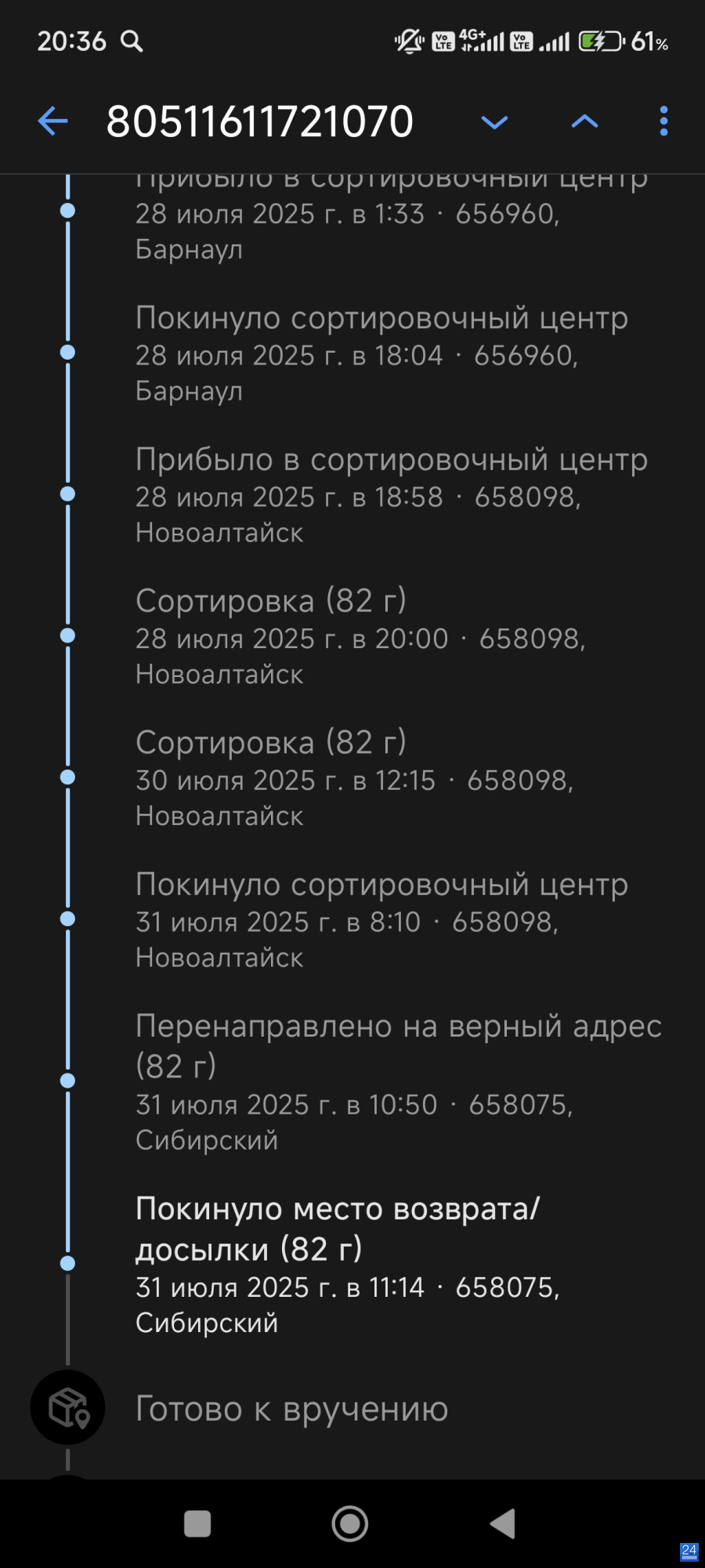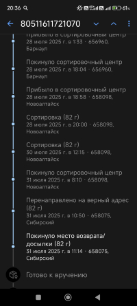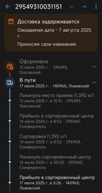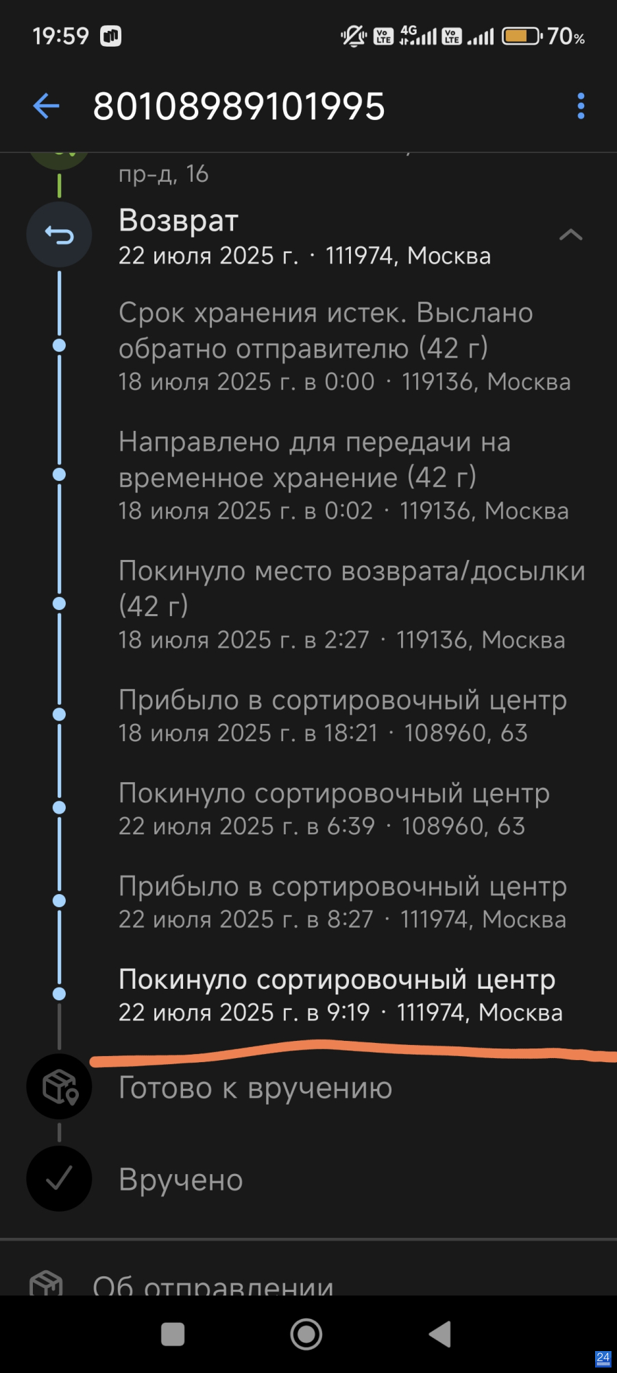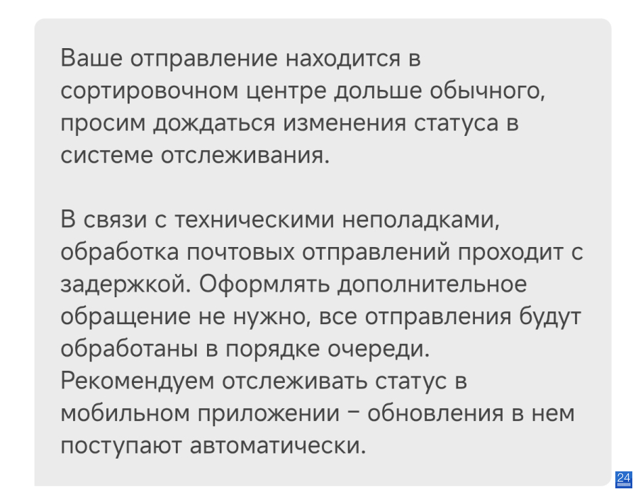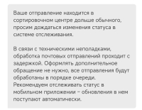 Ожидайте, у почты большие задержки на СЦ, для более развёрнуто ответа надо обращаться непосредственно в почту, в письменной форме.