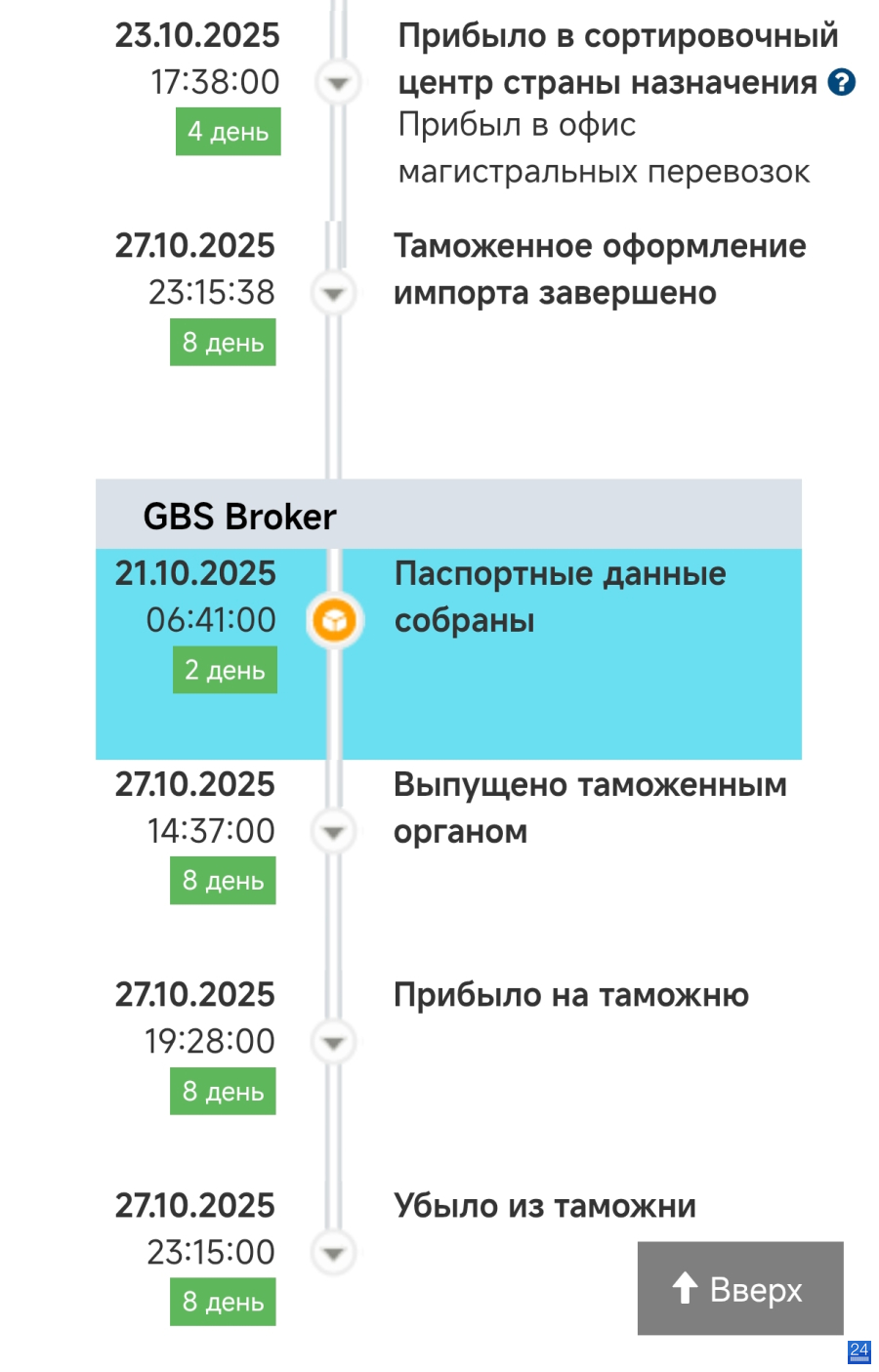 Как будет данные и поступление от GBS Broker, значит поступила в страну.