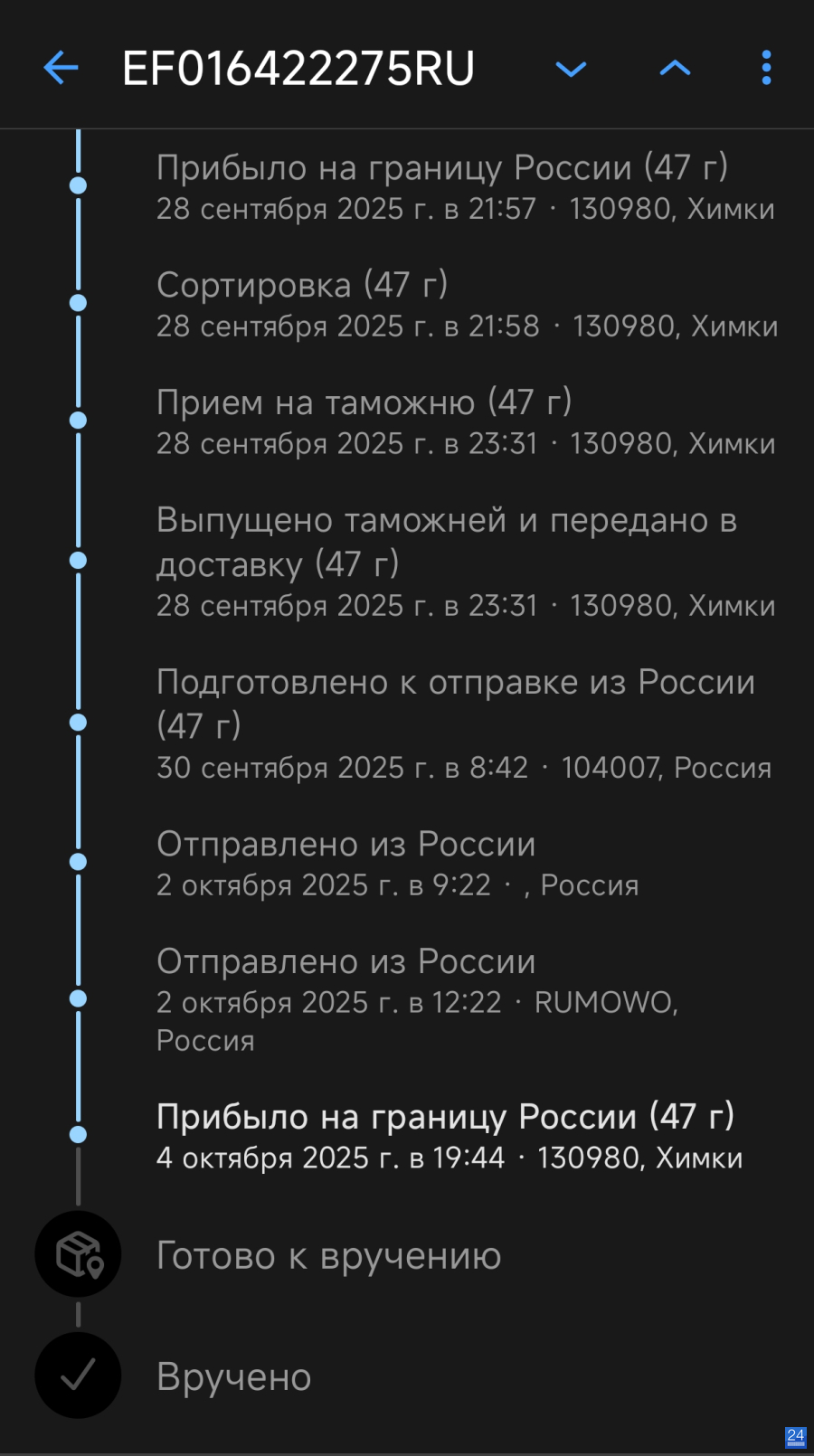 Ждать, лежит на границе России в ожидании отправки. Возможно есть трудности с доставкой или другие факторы.