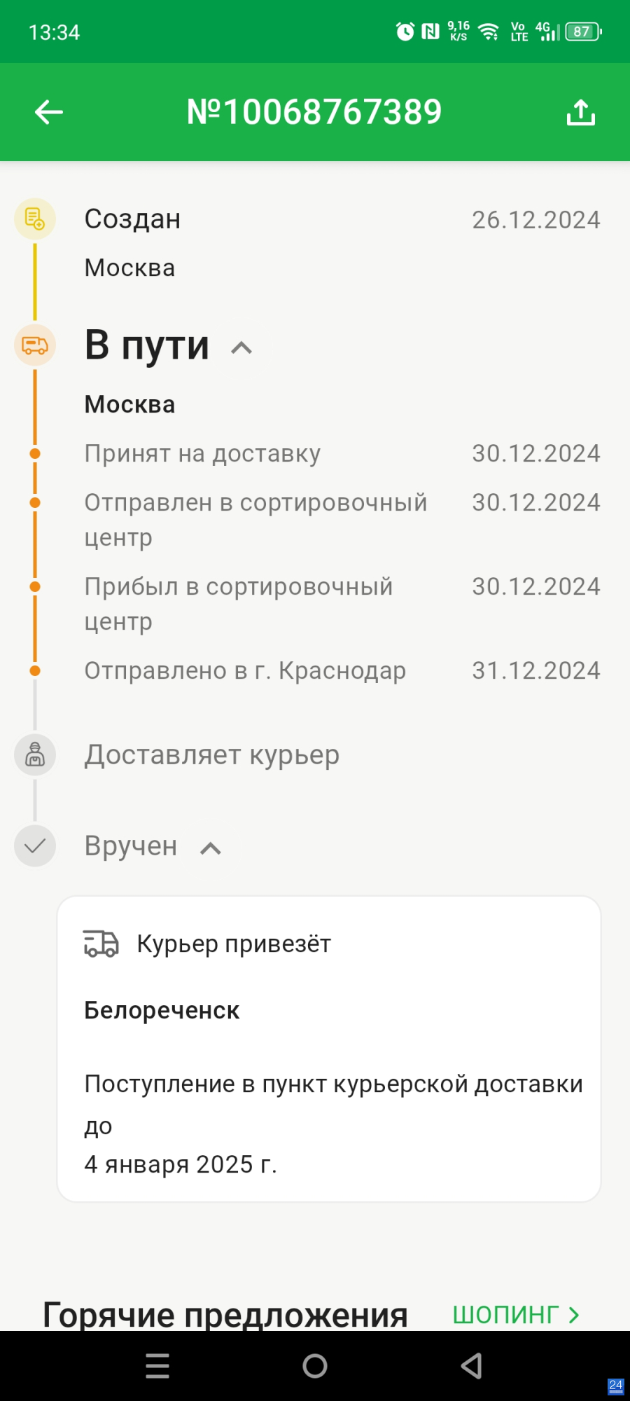 Не востребован. Обрабатывается на складе РЦ Великий Новгород