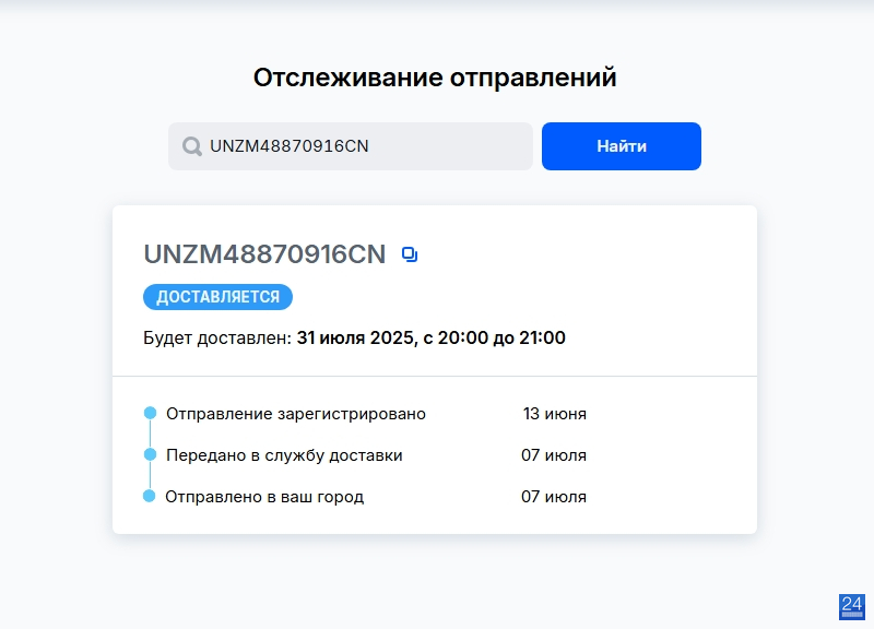 Будет доставлен: 01 августа 2025, с 20:00 до 21:00